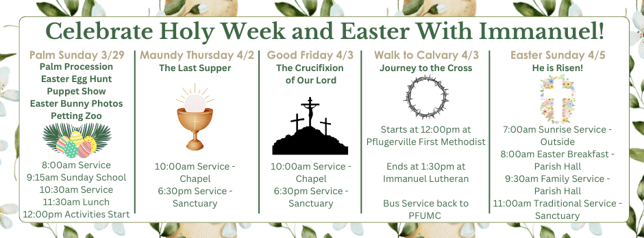 Stay connected! Sign up for our weekly Connections E-Newsletter so you know what’s coming up at Immanuel.