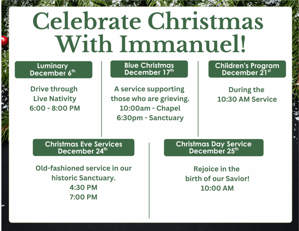 Stay connected! Sign up for our weekly Connections E-Newsletter so you know what’s coming up at Immanuel.